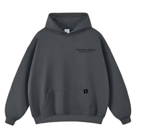 A comfy, heavy weight hoodie, exclusively designed for our "111" Range. A dark grey colour boldly featuring our angel logo on the back! A true statement piece!
